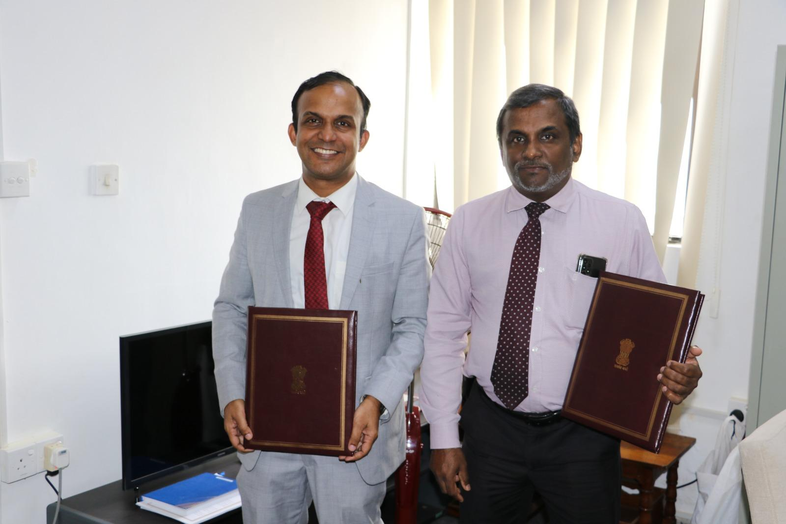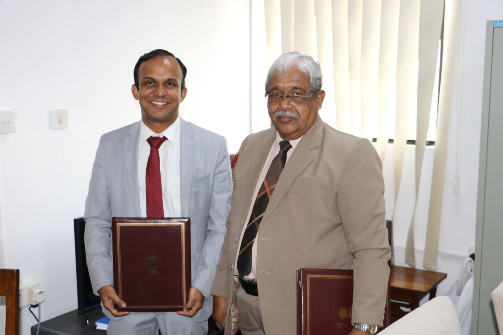 High Commission of India signed two significant agreements for the construction of 10,000 houses in plantation areas of Sri Lanka under Phase-IV of Indian Housing Project on 28 November 2023. Separate agreements with the two Implementing Agencies namely National Housing Development Authority (NHDA) and State Engineering Corporation (SEC) are aimed at early roll out of construction of the 10,000 houses. Counsellor and Head of Development Cooperation Wing, Mr. Eldos Mathew Punnoose, Chairman of SEC, Mr. Rathnasiri Kalupahana, and General Manager, NHDA, Mr. Kankanamalage Ajantha Janaka were the signatories to the two agreements.